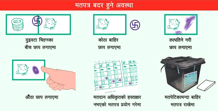 निर्वाचन चिन्ह बढि हुँदा मतदाता झुक्किएर मत बदर संख्या बढेको हुन सक्ने अनुमान राजनैतिक दलहरुले गरेका छन् । उम्मेदवार नभएको चिन्हमा समेत मत परेको पौडेलले जानकारी दिनुभयो । पाँच दलीय, दुई दलीय गठबन्धन र स्वतन्त्र उम्मेदवारलाई समेत मतदान गर्दा झुक्किएर मत संख्या बढी बदर भएको हो ।
